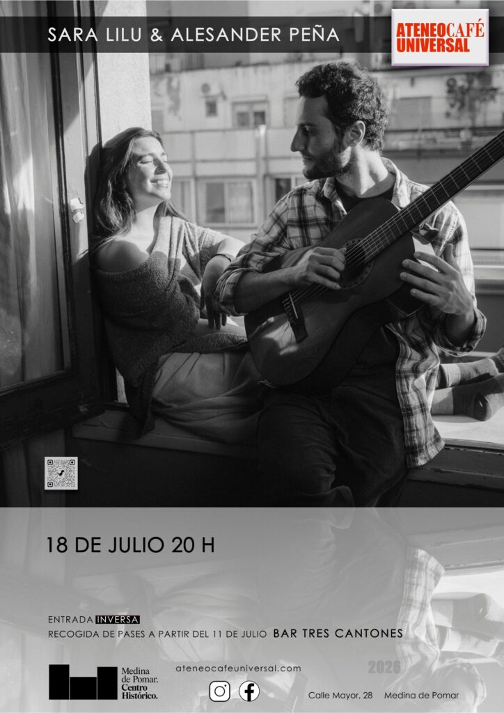 Sara Lilu y Alesander Peña presentan en concierto su nuevo repertorio, adelanto de su próximo disco, una propuesta de jazz nacida del encuentro entre la voz y la guitarra: un repertorio creativo y fresco donde la improvisación y la cercanía del directo hacen que el espectador se sienta parte de la música en cada concierto