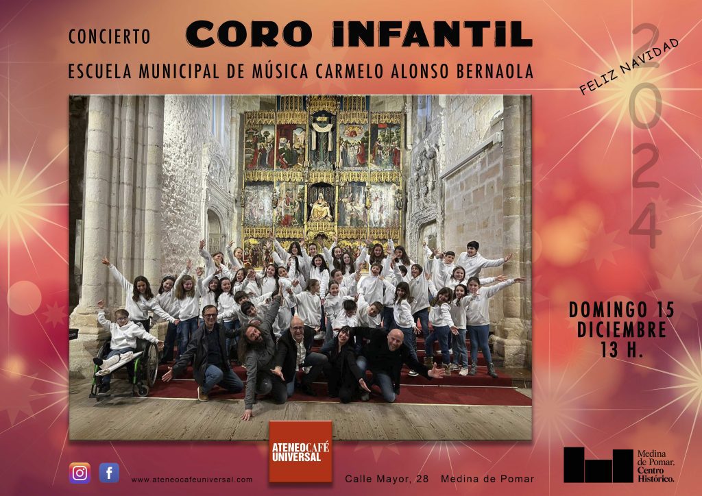 El Coro Infantil de la E.M.M.C.A. Bernaola, formado por cerca de 30 voces entre los 8 y los 15 años, ofrecerá un concierto en el que se interpretarán obras de compositores actuales en una selección de temas corales en el que no faltarán las canciones navideñas. Todos, grandes y pequeños, estáis invitados a compartir un buen rato de música con nosotros. ¡Os esperamos!