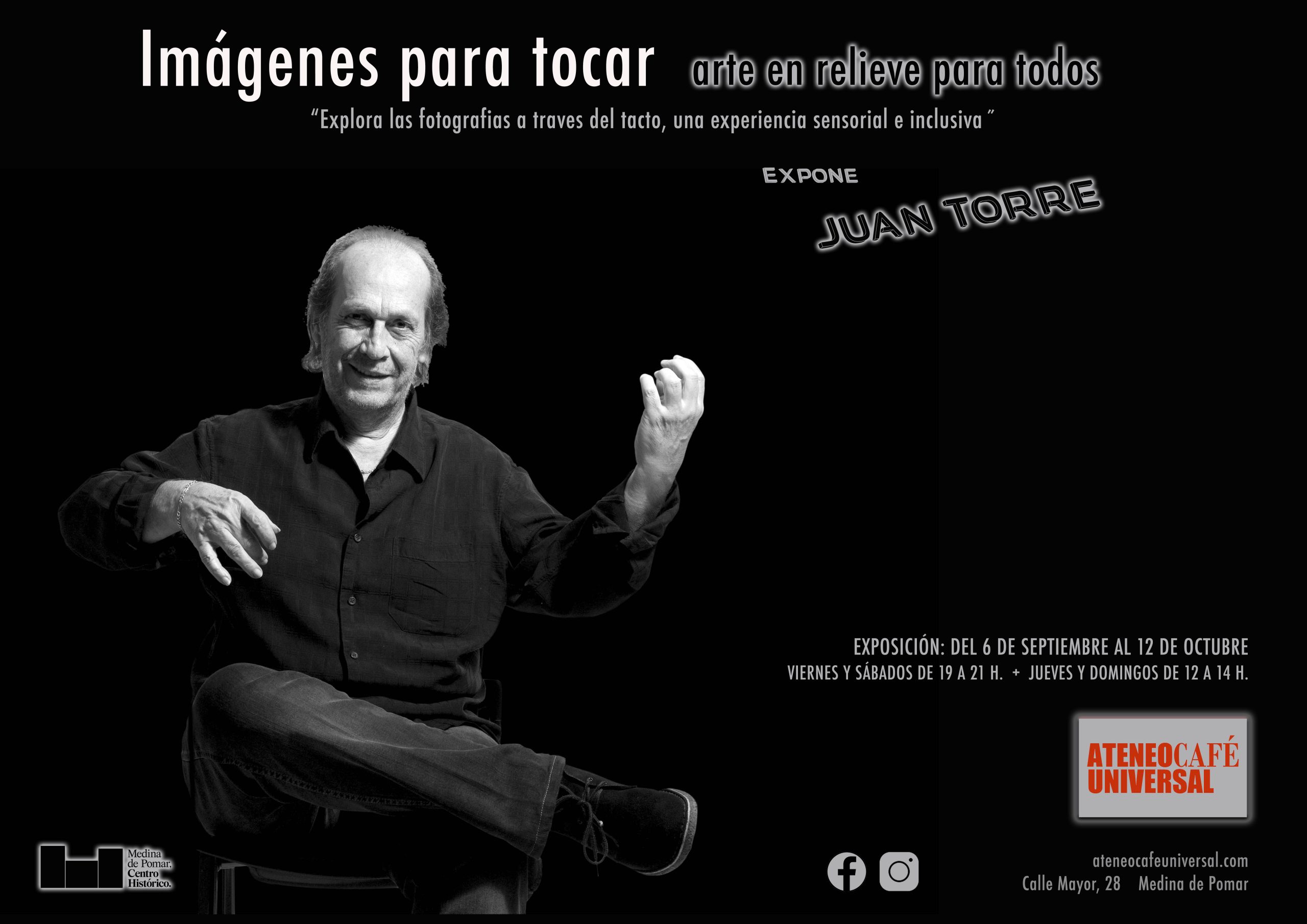 Imágenes para tocar es un proyecto de superación. Es un desafío.. Imágenes para tocar significa desarrollar una novedosa técnica de impresión que confiere relieve a las imágenes. Una nueva forma de mirar y sentir, una forma diferente de acercarse a la fotografía, con las manos por delante. . Esto hace que sea posible tocar una imagen. Verla con los dedos. Una forma transgresora de acercarse a las fotografías. A su vez es un juego de palabras. Son los músicos retratados tocando los que le dan ese enfoque. . (www.juamtorre.com) Seria interesante visitar la exposición con un antifaz.
