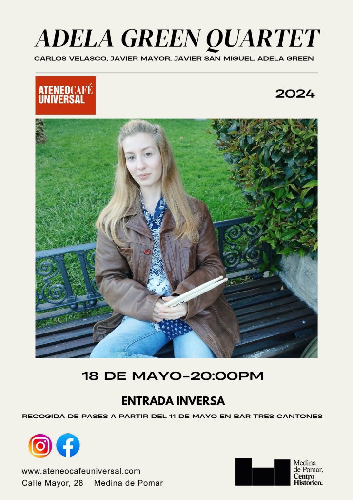 Adela Green (Barakaldo, 2007) es una joven promesa del jazz. Pese a su juventud, ha compartido escenario con figuras como Andrezj Olejnizack, Gorka Benítez, Eric Surmenian, Iván San Miguel.. Presentará un repertorio postbop enérgico y sin concesiones en el que la batería flota libremente sobre composiciones originales y algunas tomadas de Kenny Garrett.
