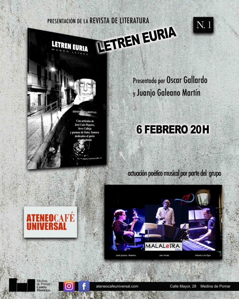 Tras la presentación, que correrá a cargo del novelista Oscar Gallardo y del poeta Juanjo Galeano, habrá una actuación poético musical por parte del grupo. “Malaletra”